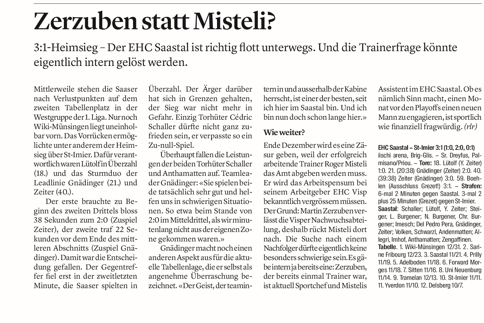 Das Derby ging zu gunsten der Unterwalliser mit 4:0.