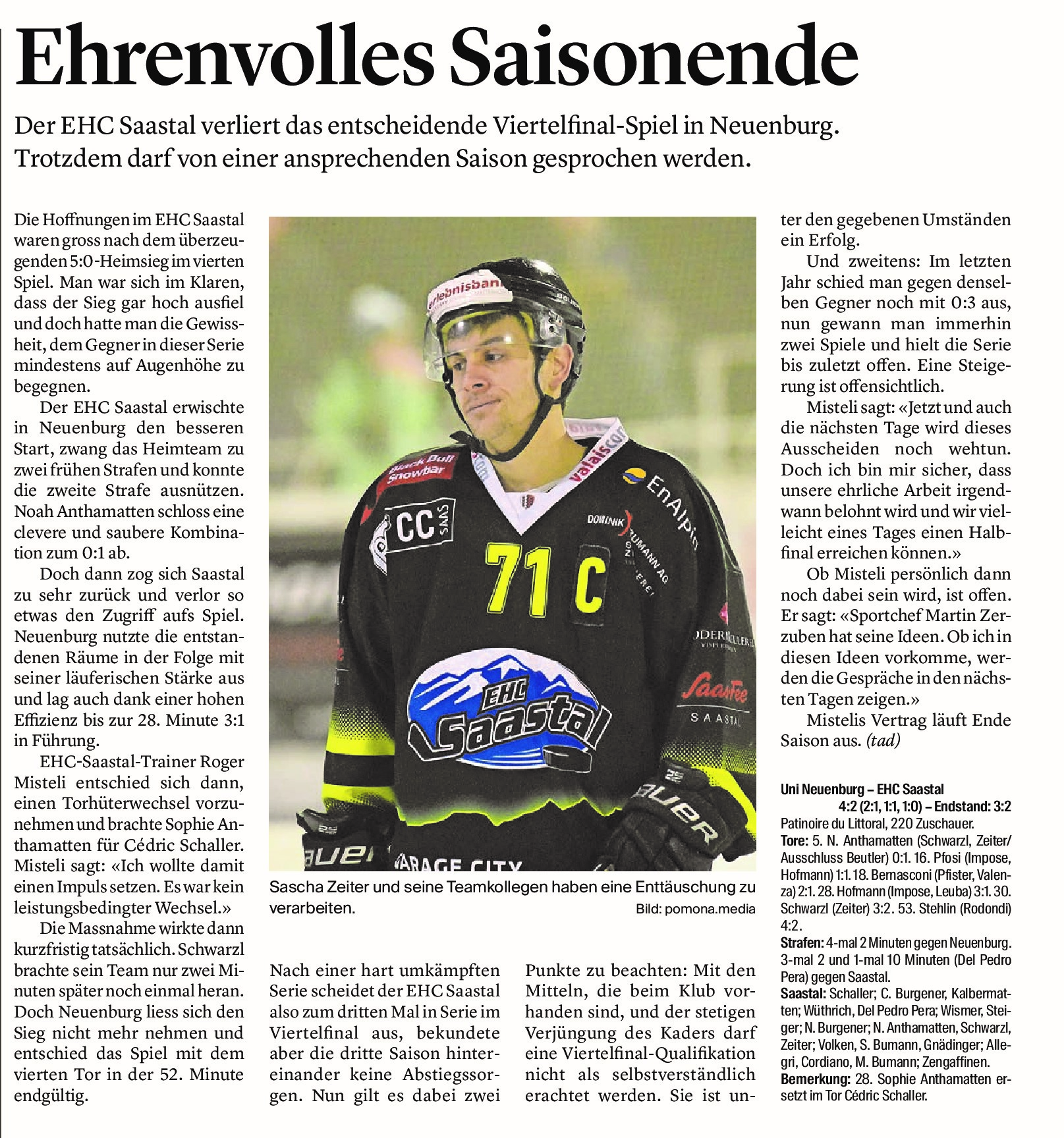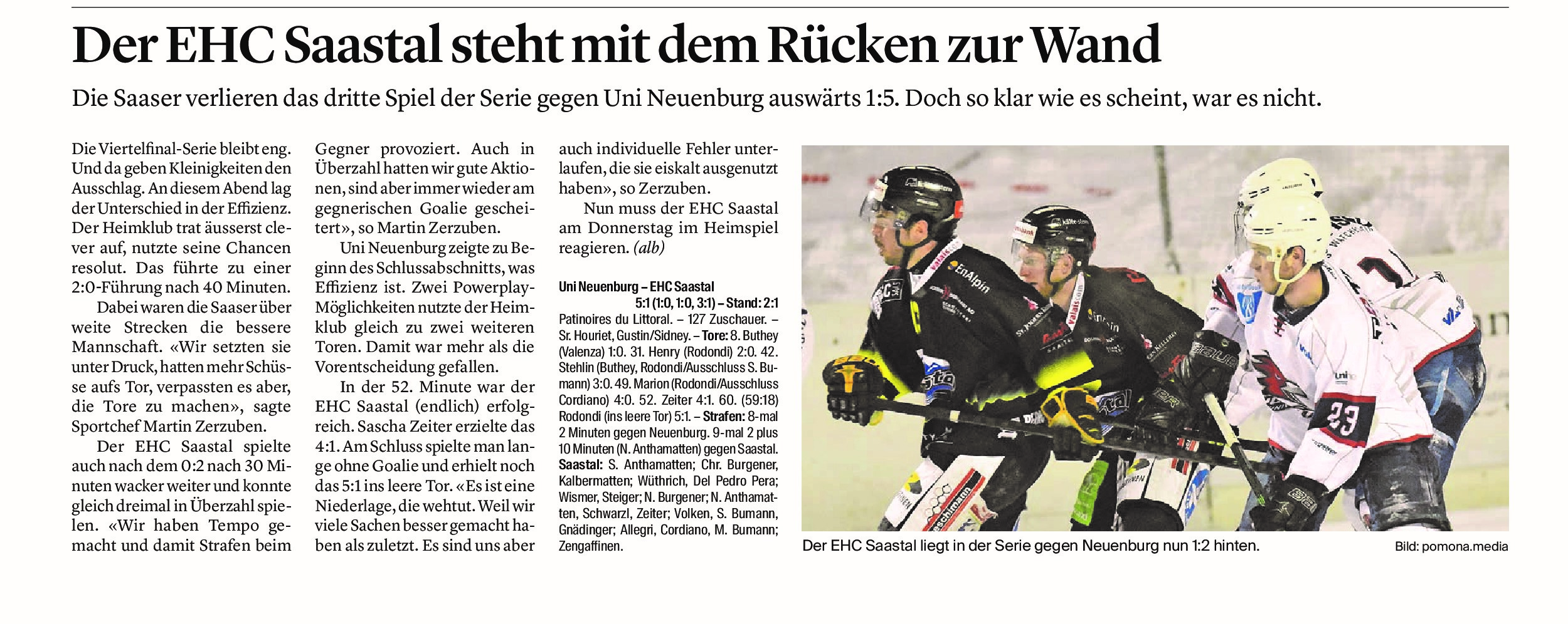 Auch beim dritten Spiel konnten die Saaser nicht vorlegen und müssen nun am Donnerstag um alles oder nichts spielen. Die Mannschaft ist zuversichtlich, denn sie blieben in Neuenburg nicht Chancenlos.