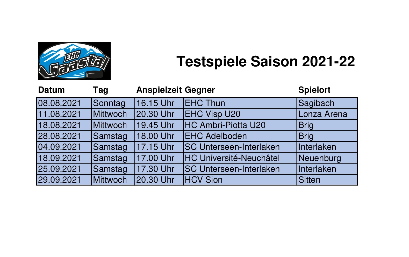 Definitives Testspiel-Vorbereitungsprogramm EHC Saastal