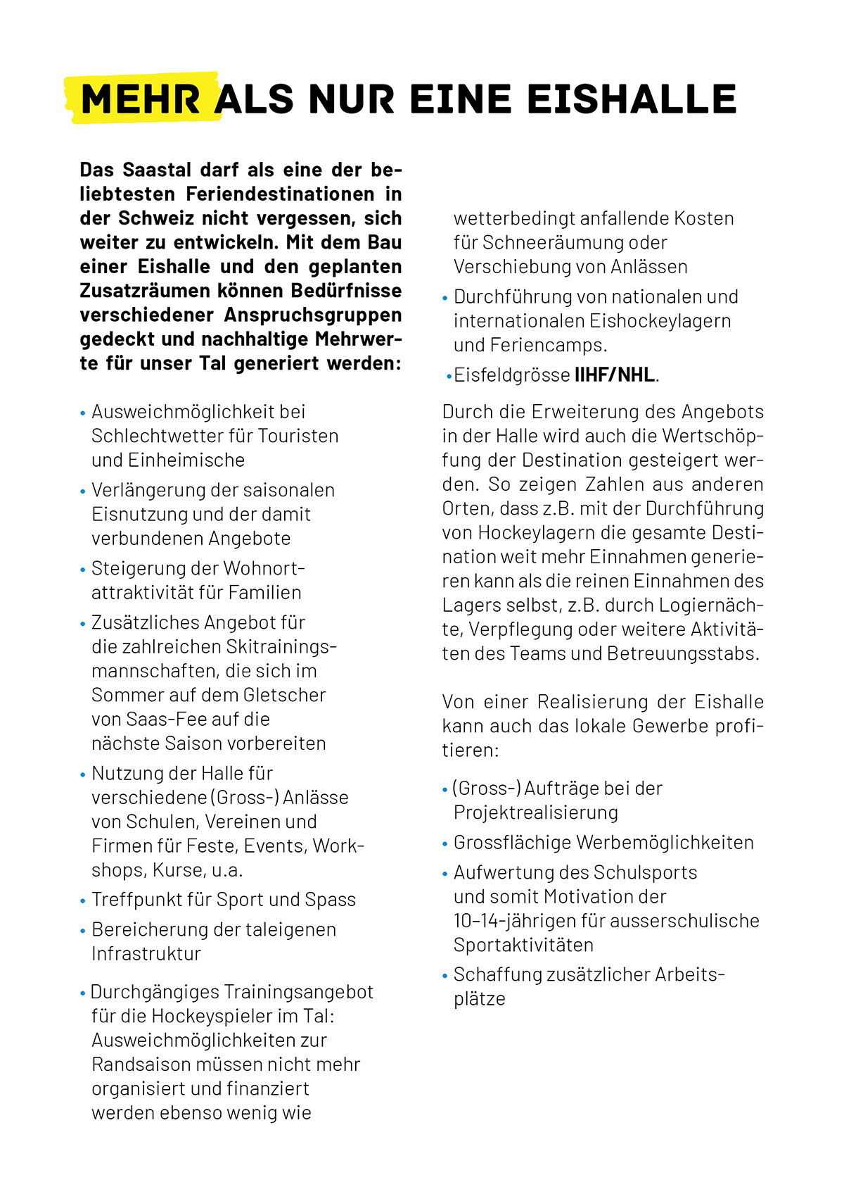 Wir wollen nicht nur eine Eishalle, sondern eine Bereicherung für das Saastal.