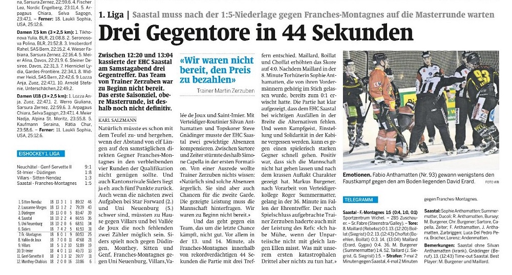 - Unglückliche Niederlage gegen HC Franches-Montagnes